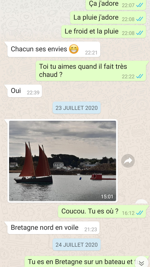 - Le 6 septembre, il annonce qu'il est en couple. Je lui écris ces mots :